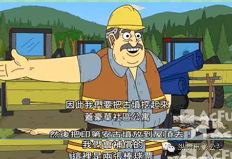 因此我们要把古坟挖起来盖豪华社区公寓然后把印第安古坟放到屋顶去!我们会补偿的这里是两张棒球票