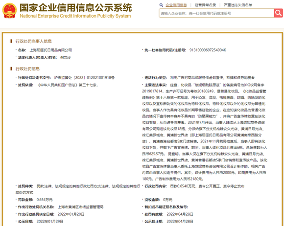 除个护家清类产品,美妆产品因宣传翻车的也不在少数,近年来国家针对违规宣传加大监管力度,对涉事品牌/企业进行处罚。