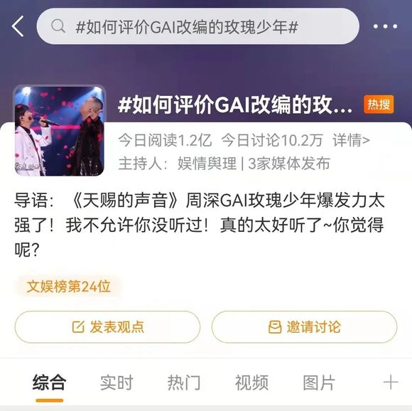 话题内容:你认为,周深和GAI对《玫瑰少年》的改编是否欠妥?
