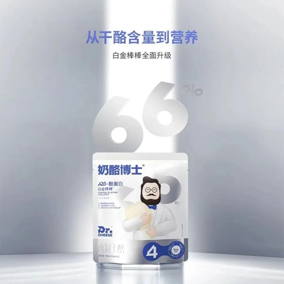 奶酪博士就2022年1月推出了新品“66白金棒棒”,在原料中添加含有A2β-酪蛋白的牛奶,干酪含量达66%,钙钠比≈3,额外添加DHA藻油等营养成分。品牌表示,产品经过一年的研发,在升级品质的同时提升了口感。