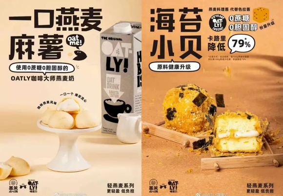 OATLY和墨茉点心局联名推出燕麦麻薯和海苔小贝;图片来源:微博@OATLY噢麦力