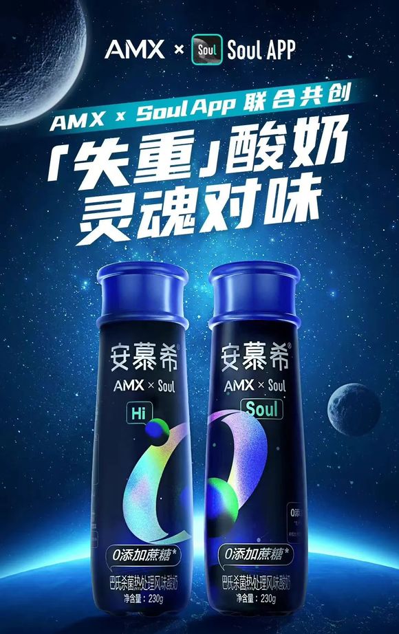 安慕希联合社交软件Soul推出 “失重酸奶”;图片来源:安慕希