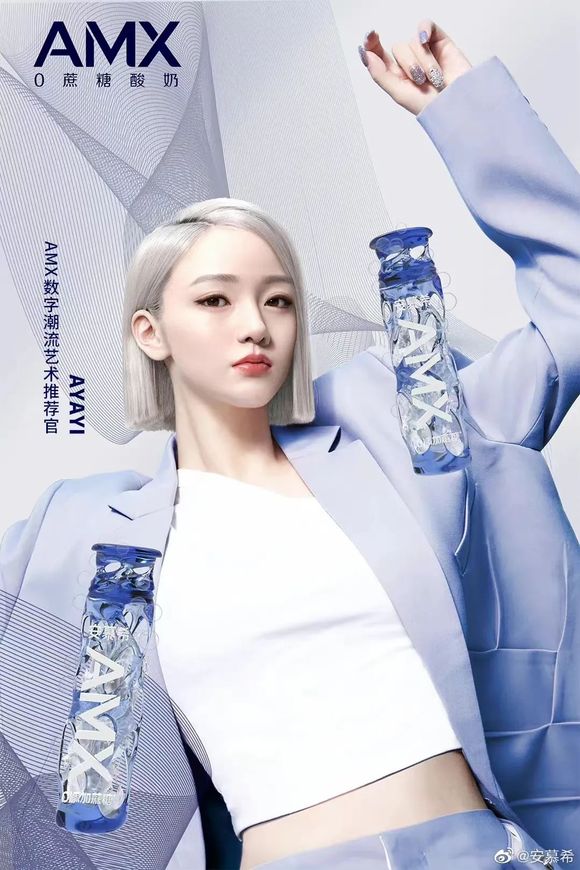 安慕希和数字人AYAYI联手设计数字酸奶;图片来源:微博@安慕希