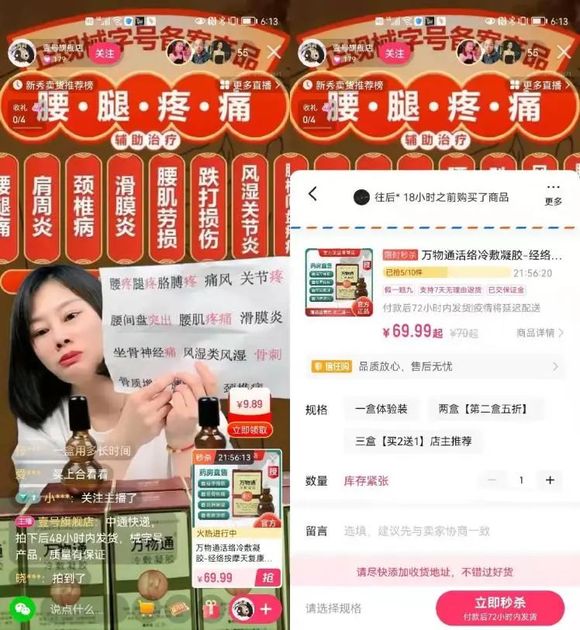 “前期给账号积累粉丝和信用度的时候,我们会邀请一些专家学者来做健康讲座,用知识类的内容把用户吸引进来,然后再做专场的直播带货,也可以导流到微信上去,用微信来销售。”小张还原了一下医药账号启动过程。