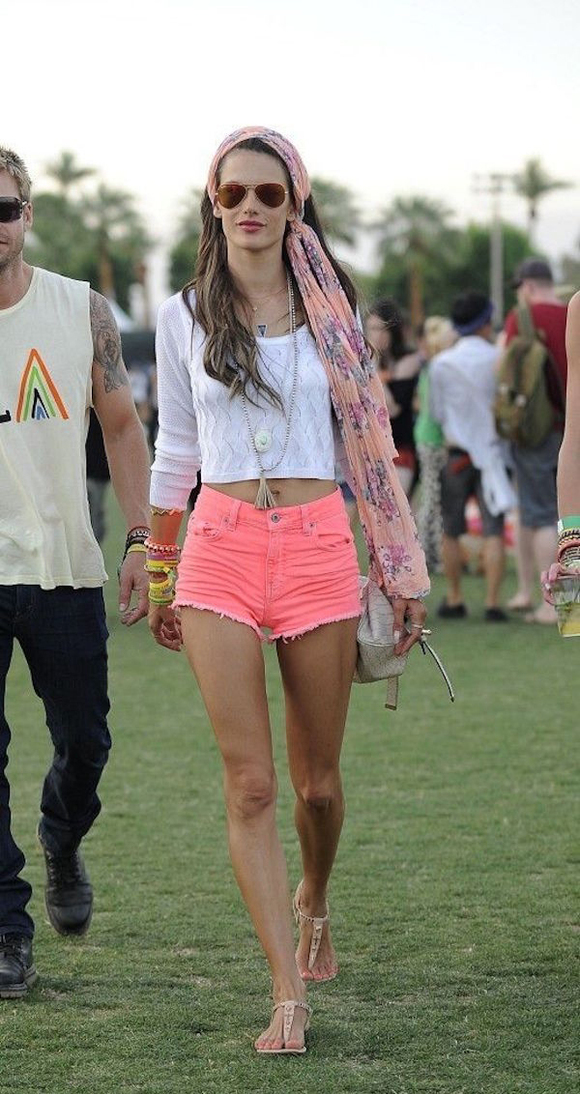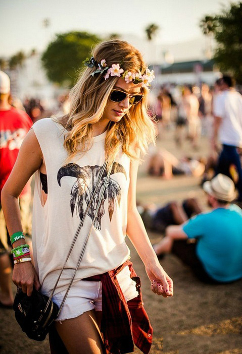 Vanessa音乐节上戴上花环发饰极具波西米亚风情。