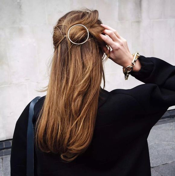 别再想是那些奶奶级的黑色一字夹了,现在发夹都逆袭了好伐!各位看官现在就流行这种金属冷感主义的发饰,简单时髦又不费力。