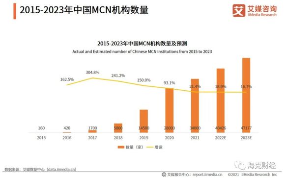 根据调研机构艾媒咨询发布的《2021-2022年中国MCN行业发展研究报告》,2021年,中国MCN机构总数已达34000家,而papitube成立的2016年,这个数字是420家,由此可见papi酱在商业上的前瞻性。