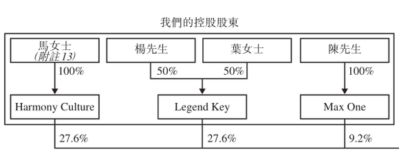 周杰伦多年的商业伙伴——马心婷是该公司的创始人以及执行董事,透过其全资拥有的公司Harmony Culture持股巨星传奇27.63%;