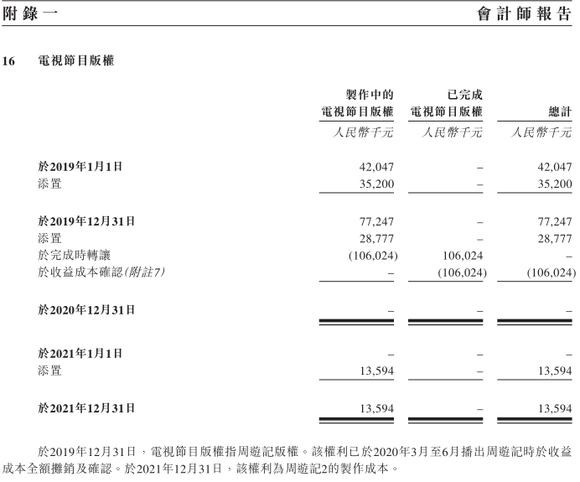 然而打造和运营IP的投入却是巨大的。招股书显示,2020年公司开支占比最大的为电视节目的版权费用,即《周游记》的版权费用,共计1.06亿元,占公司当年总收入的23.2%。