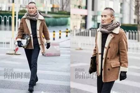 一点也不街拍好吗,彻头彻尾的僵硬摆拍。造型也太年轻了点,王石满脸的皱纹仿佛都在诉说着“尴尬”二字。