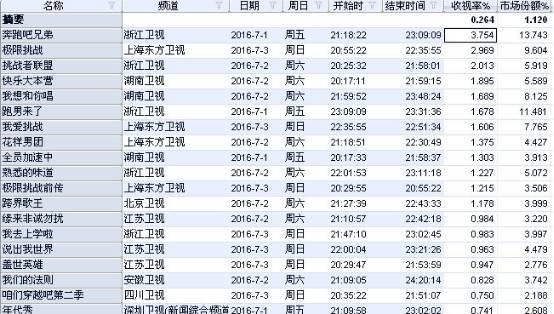 从收视率来看,从韩国买来版权的中国版《跑男》将《极限挑战》甩在身后。 7月1日周五播出的《跑男》第四季收官之作——第12期携女神张静初、王子文等与跑男成员欢乐玩耍。据当晚收视数据显示,《跑男》收视率高达3.7,市场占有率是13.7,领先周日播出的《极限挑战》。