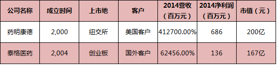 上表格可以看出,在美上市的药明康德营收和净利润是泰格医药的5-6倍,但二者的市值却不相上下。从2013年开始,药明康德的PE都在26左右浮动,对比同为CRO公司的泰格医药,其估值高峰时超过200亿,PE达到140。市场调整后,其目前市值为135亿人民币,PE仍高达83.8。