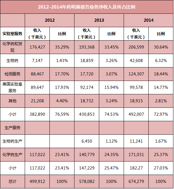 退回到药明康德在美国退市前的三年(2012-2014年),可以发现药明康德的业务主要分为实验室服务和制造服务两大类。