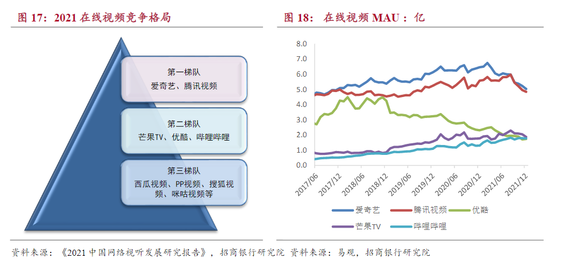 据《2021中国网络视听发展研究报告》显示,截至2021年12月,爱奇艺、腾讯、优酷月活数分别为5.0亿、4.9亿、1.7亿,芒果TV和哔哩哔哩MAU分别达到了1.9亿、1.8亿。行业前五家视频平台,优酷已经来到吊车尾的位置。