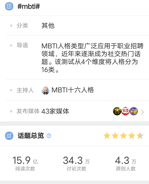 一个月内上热搜多次,其中光MBTI这一条话题就有高达15.9亿次的阅读量。