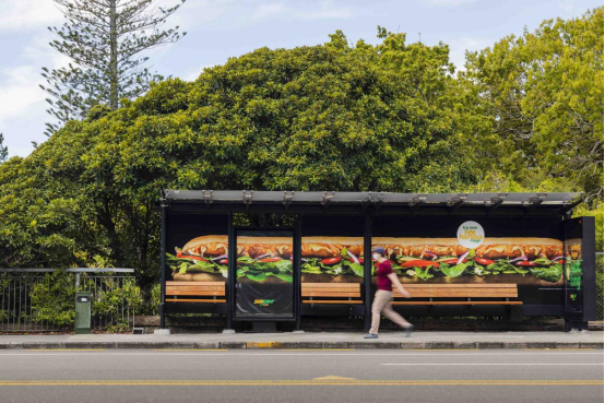 赛百味用海报的形式清晰的展示了它们新鲜的食材,以及要满得快溢出来的馅料。充分说明它们新鲜、用料充足。