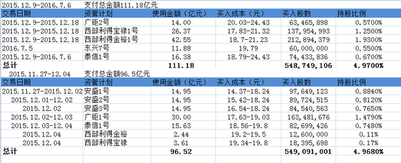 第一阶段,主要是用前海人寿的保险资金购买,共斥资104.22亿元,其中包括万能险账户保费资金79.6亿元和传统保费资金24.62亿元。根据公开披露,截至去年7月11日,前海人寿持股万科比例达到5%。