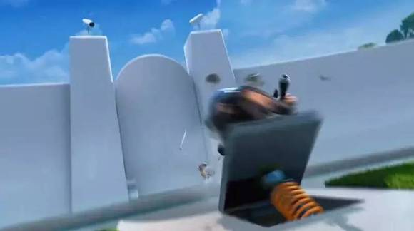 说回《摇滚藏獒》,在这部显然是好莱坞口味的动画里,那些老套路旧桥段用得似乎也不是那么走心。在之前的预告片中,有一部单独拎出了藏獒去猫王屋子的段落,但这一段,却像极了《卑鄙的我》——那部造就了「小黄人」的经典电影就是围绕着怎么进这间机关重重的房子展开的。