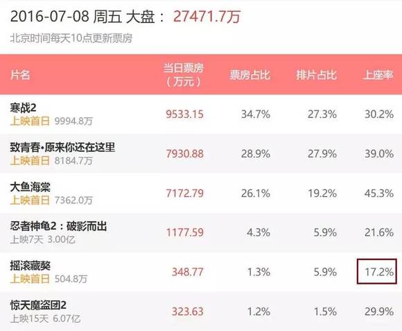 回来看首映日的上座率,确实差了一截。