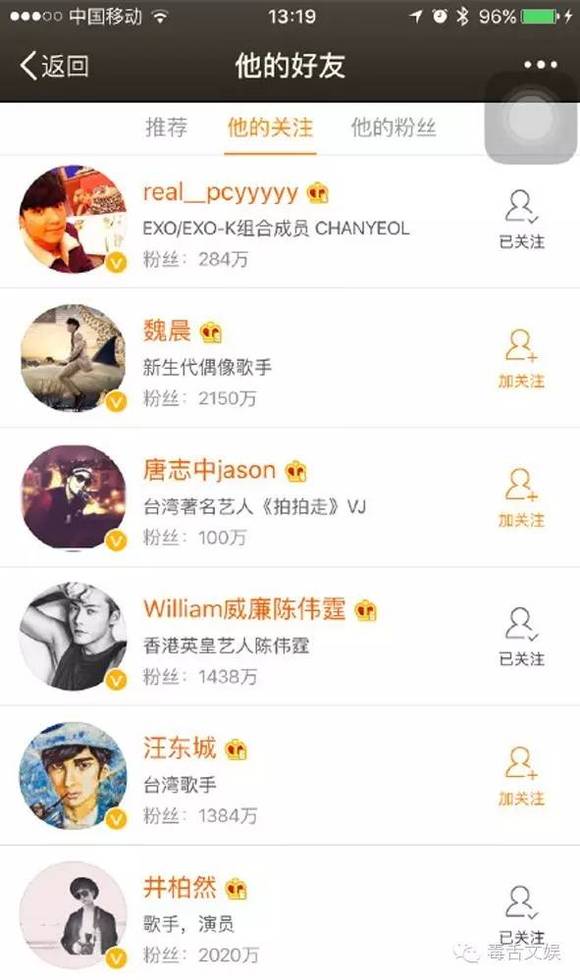 私底下也是完完全全的迷妹,灿烈开通微博第一时间关注!