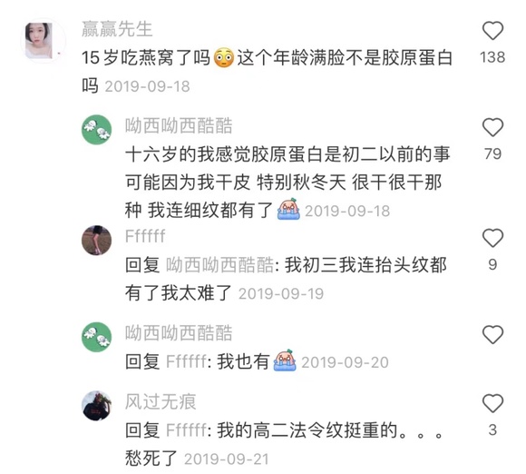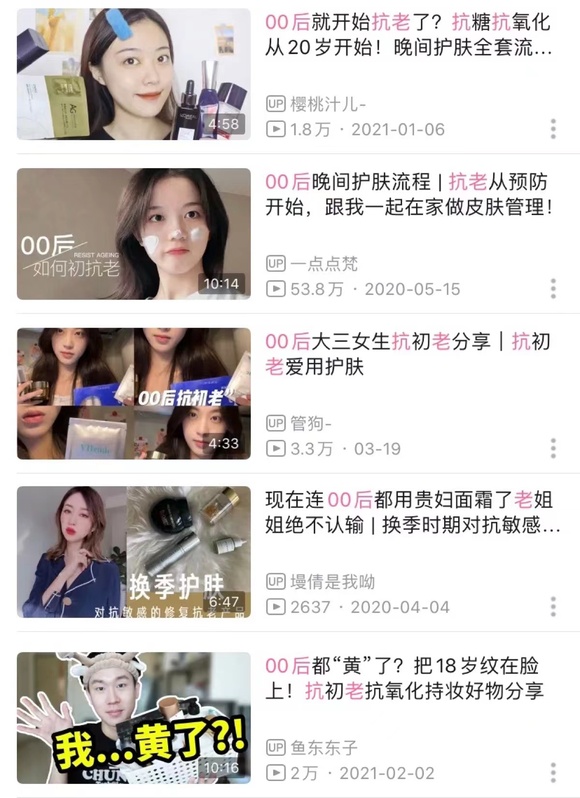 养颜燕窝、防皱精华液、抗初老葡萄籽、密发黑芝麻丸……在倡导精致生活的小红书上,一名不到17岁却自嘲“老少女”的花季女孩分享了她的抗初老秘笈,这篇笔记在被大量点赞与收藏之余,也引发了评论区众多女性的惊异与焦虑。据《福布斯》数据统计,大众的抗衰意识正呈现出持续年轻化的趋势,中国20-24岁的都市女性中,有2/5(39%)在使用抗衰老产品。据2020年京东618数据调查,全网有25%的抗初老产品被00后消费者买走。