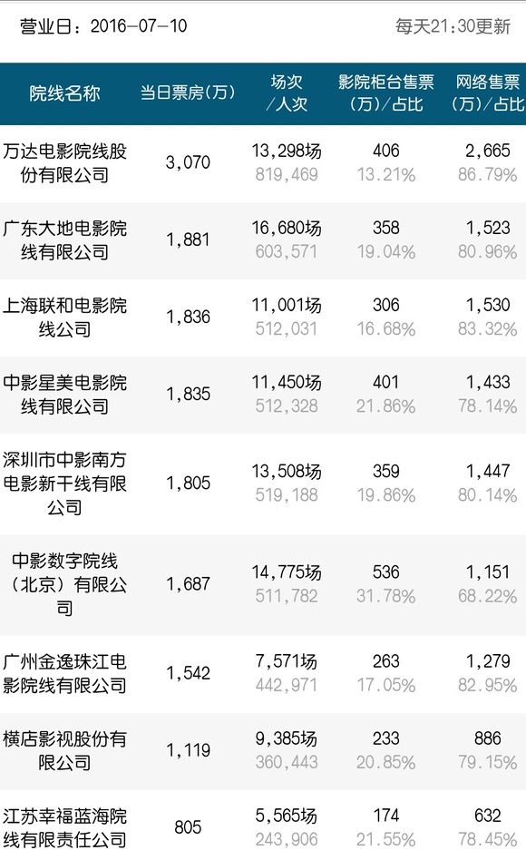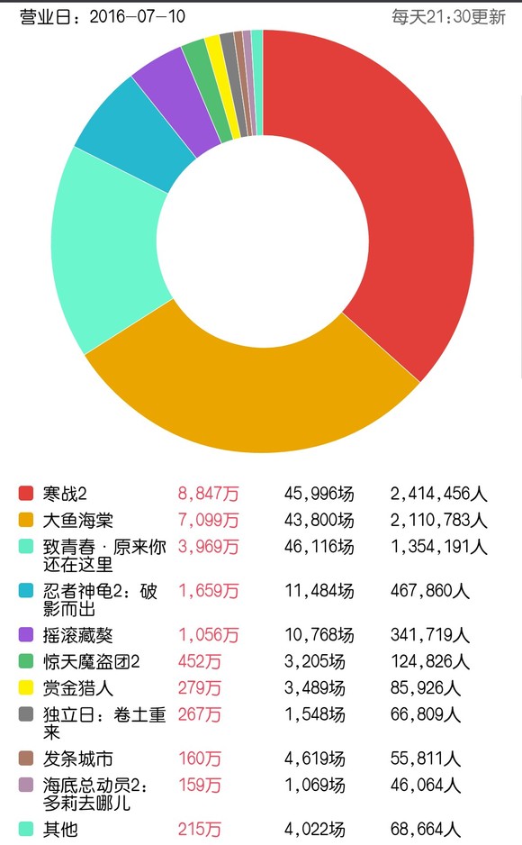 每日票房及收视数据: