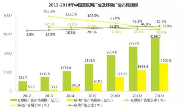 预计2018年移动广告市场将达到2200亿人民币。2年内苹果搜索竞价仅中国区市场规模将超200亿人民币。