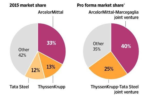 据投资公司杰富瑞(JEFFERIES)指出,该项潜在交易的对象可能包括:塔塔钢铁在塔尔伯特港、威尔士、艾默伊登、荷兰的工厂与蒂森克虏伯在德国杜伊斯堡的一些业务的合并,以建立欧盟第二大扁钢生产商,市场占有率将达25%。目前欧盟最大的扁钢生产商是安赛乐米塔尔(ArcelorMittal)也是全球最大钢铁制造商,市场占有率高达33%。