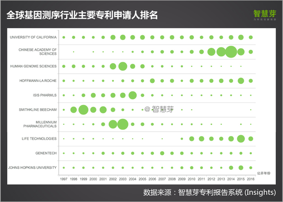 由于高校、科研机构、海外医药公司在华机构以及各类医院的需求,中国已成为基因测序市场的大国。目前中国受理的基因测序相关专利已累积达到两万余件,其数量之多仅次于美国。
