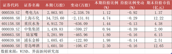 值得注意的是,部分个股由于前十大股东门槛抬高,导致国家队部分分仓掉出前十,从而造成国家队减持操作的假象。剔除这类个股后,一季度,国家队仍对7只个股进行了减持。其中,减持粤电力A数量最多,达2338.76万股。Wind数据显示,证金自2020年四季度开始减持该股,迄今已连续六个季度减持,持股比例由5.12%降至1.12%。