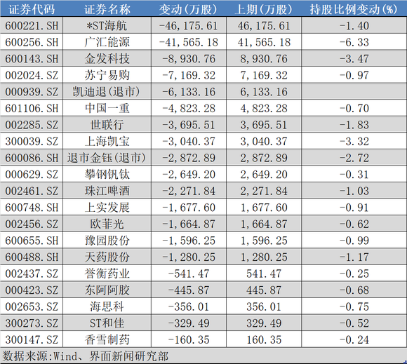 此外,国家队还退出了20只个股的十大流通股东,包括*ST海航、凯迪退(退市)、退市金钰(退市)、ST和佳等多只披星戴帽股或退市股。
