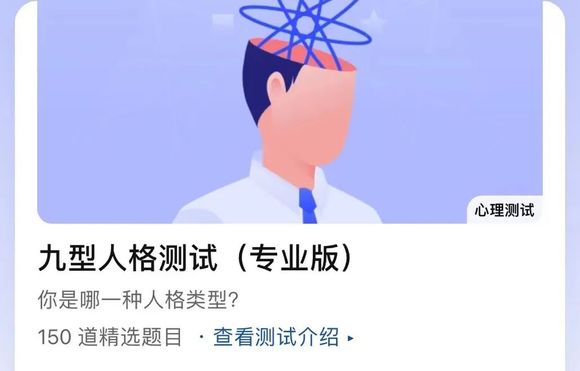 九型人格测试旨在帮助测试者掌握个人行为习惯,通过108个称述,判断人的活跃程度、感兴趣的范围等,从而得出测试者从属于九型人格中的哪一类——完美型、助人型、成就型、艺术型、理智型、疑惑型、活跃型、领袖型、和平型。