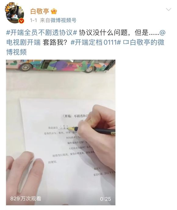 当然,这其中也包括“反剧透”,特别是在强悬疑的类型中。最近的例子就是《开端》,开播之前,白敬亭等一众主创都晒出了自己签署的反剧透协议,尽量将“凶手是谁”的悬念保持到大结局才揭晓。但即便如此,这种“反剧透”也只能保护那些按时追剧的人,不可能照顾到所有人的观剧体验。