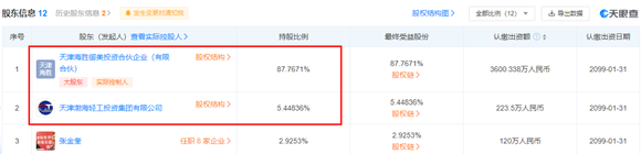 根据天眼查,在天津医药成为郁美净控股股东之前,天津海胜御美投资合伙企业(有限合伙)系郁美净实际控股人,持股87.77%。天津渤海轻工投资集团有限公司为郁美净第二大股东,持股5.44836%。