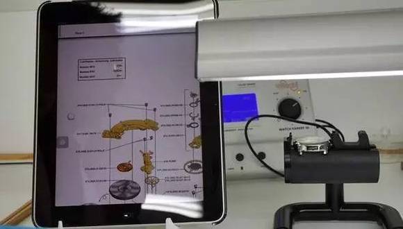 接下来会依照检测出来的结果,由维修师来进行维修。为了让手表可以最正确、最精细的被检查和维修,所以每个维修师的桌上都会有一台平板,这台平板里面存有梅花表最精细的机芯分解图。维修师可以依照这个图来维修每一支手表。