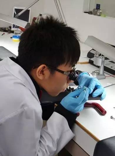 老于所在的梅花钟表维修服务中心里,对于机芯维修也都是由老师傅操刀,新人在旁边做笔记边学习。从无尘空间到所使用的仪器设备也均瑞士原厂标配复制过来,梅花表在这一点上的确点赞!