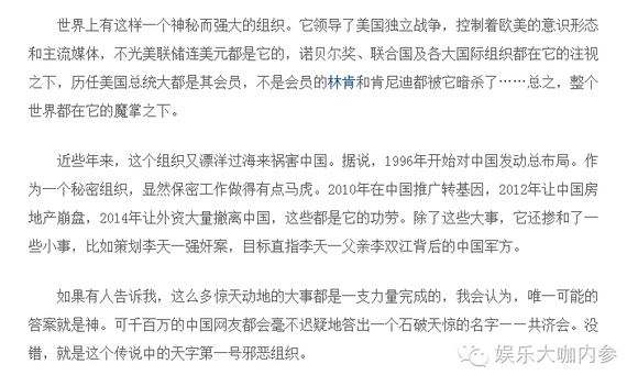现在,赵薇事件中,据说这个共济会又不拘小节地参与了爱情电影《没有别的爱》。但是因为内参君能力有限,关于这个事情实在无从考证。所以,只能来说说可以被考证的,关于赵薇杀人指控的“你好万维网”事件。
