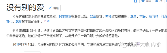如果真要说此次赵薇事件背后的资本势力,那大概就是《没有别的爱》背后的出品方,目前已知的出品方除了阿里影业还有其欣然影业: