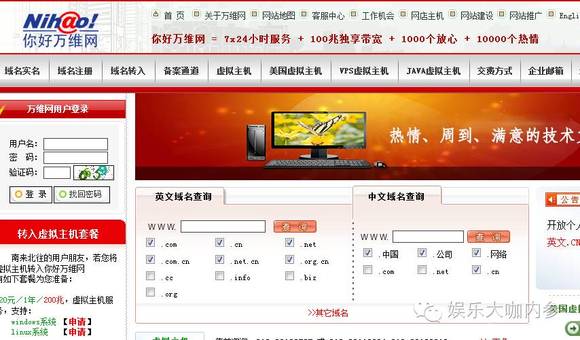 这是目前“你好万维网”的截图,主营业务是域名注册、虚拟主机等。在万惠所称的2008年开始被赵薇报复之前,你好万维网也是从事差不多相关业务: