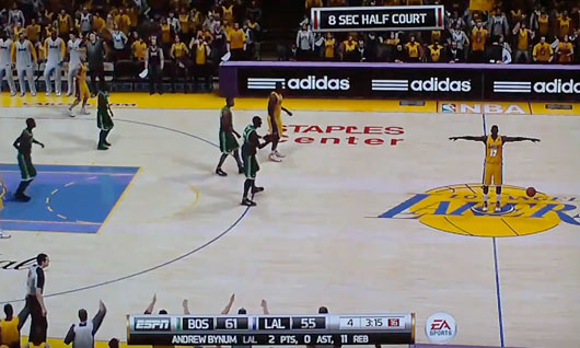 DEMO版发布出来之后,NBA Elite 11的确火了,但那是因为玩家们都被逗乐了。湖人中锋拜纳姆居然会在游戏里张开双臂留在中场线,保持这个姿势到游戏结束,这个镜头在后来被亲切地称为“耶稣-拜纳姆”“拜纳姆受难”“乔丹之翼”。相比之下,教练、吉祥物、啦啦队会莫名其妙地在球场上到处溜达这个问题都没人提,可能是因为这类型的BUG太过于常规。