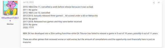 结果就是他们的直接竞品NBA 2K恰好在2009年之后开始推出PC版本,顺利填补了EA让出来的市场空白,加速解决了市场基数问题。