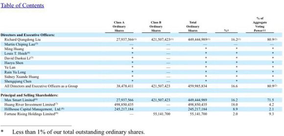 在京东2015年年报中我们可以看到,高管团队中除了刘强东持有公司大量股票之外,其余高管持股均在1%以下。