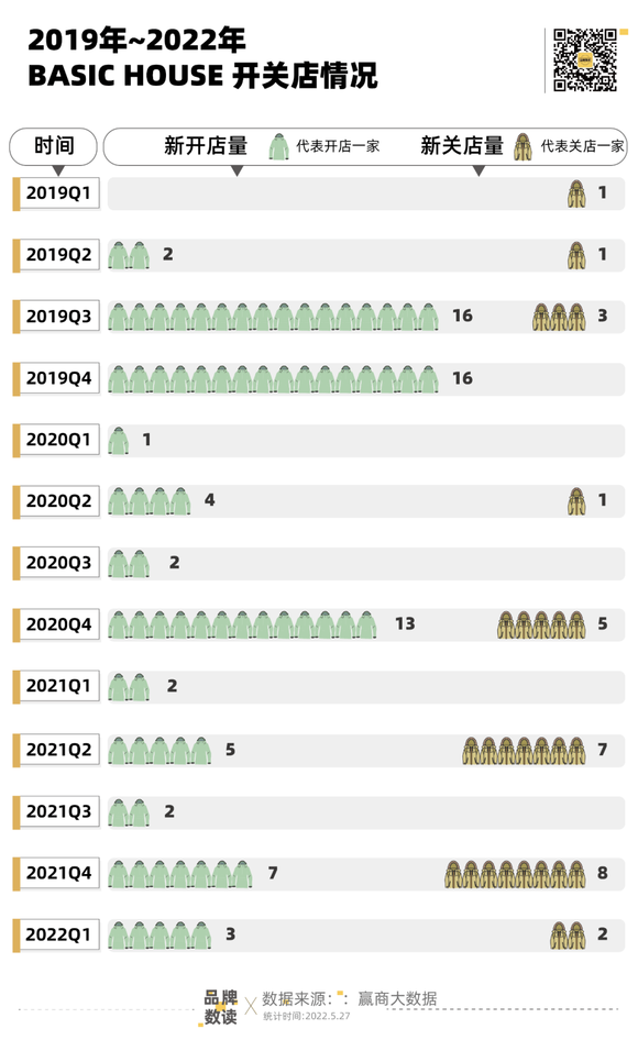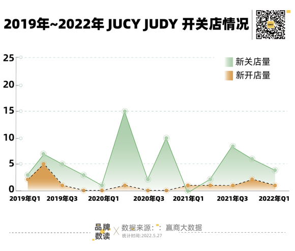 根据赢商大数据,主品牌BASIC HOUSE、Mind Bridge和JUCY JUDY三个品牌在购物中心中门店突破百家,在2019年至2021年内开关店波动明显,Mind Bridge和JUCY JUDY关店数均高于开店数,JUCY JUDY关店数甚至比开店数高出三倍。