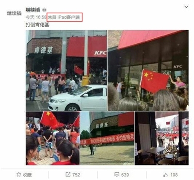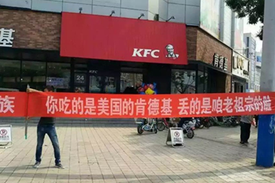 4年后,随着南海问题所发酵的爱国热潮再一次发展成为集会行为,美国快餐品牌肯德基成了第一个集火目标。