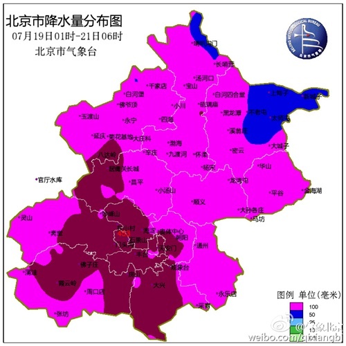 受低涡系统影响,7月19日01时至20日08时北京市出现今年入汛以来最强降雨。监测显示,19日01时至21日06时,全市雨量监测站平均雨量达210.7毫米,城区平均274.0毫米,西南259.6毫米,东南217.7毫米,西北198.3毫米,东北139.7毫米。其中,最大降雨量出现在门头沟东山村,达453.2毫米;有359个雨量监测站超过100毫米,123站超过250毫米,4站超过400毫米。