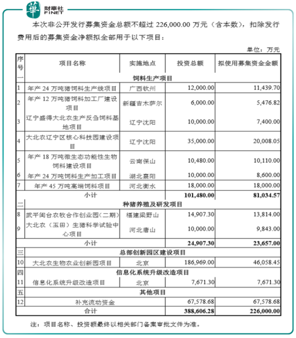 大北农6月6日盘后公告,拟非公开发行募集资金总额不超过22.6亿元,用于饲料生产项目、种猪养殖及研发项目、总部创新园区建设项目、信息化系统升级改造项目及补充流动资金。