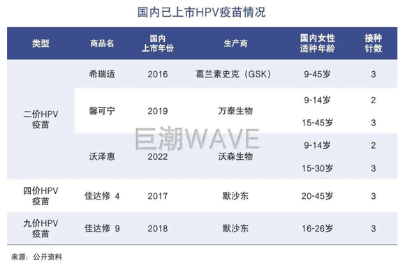 2006年世界第一个HPV疫苗问世,2016年我国才正式批准由GSK生产的二价HPV疫苗上市销售。