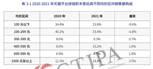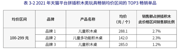如上所述,2021年,天猫平台上拼插积木类玩具的销售额同比下降4.3%,销量同比下降14.4%,均价同比上升11.8%。