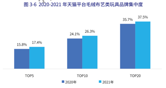 按照销售额,娃娃类玩具TOP5品牌集中度为41.9%,TOP10品牌集中度为58.0%,TOP20品牌集中度为73.1%。