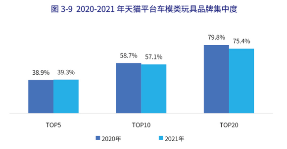 从销售额看,车模类玩具TOP5品牌集中度为39.3%,集中度进一步提高;TOP10品牌集中度为57.1%,TOP20品牌集中度为75.4%,占比有所下降。